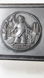 Scatolina porta gioie, ricordo-souvenir, in vetro cristallo con coperchio in peltro raffigurante un medaglione con la scritta "GRUSS MÜNCHEN" (Saluti da Monaco). Monaco di Baviera.