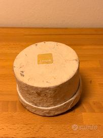 Scatolina decorativa THUN di forma rotonda, realizzata in materiale cartaceo pressato con finitura naturale color avorio. Il coperchio è coordinato e presenta un pomello centrale in metallo con lavorazione decorativa. Sul fondo è presente l’etichetta originale THUN.