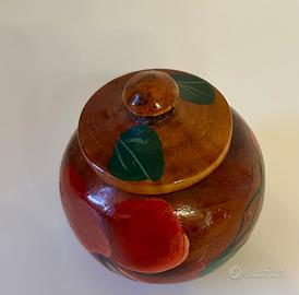 Grazioso contenitore in legno con coperchio, decorato a mano con motivo frutta 🍎