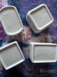 Vendo 4 scatoline vintage in ceramica bianca. Sono tutte con coperchio e di forma diversa. Vendo anche singolarmente.