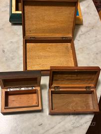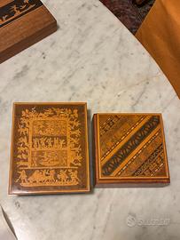 7 graziose scatoline in legno intarsiato, realizzate da artigiani sorrentini nelle loro botteghe nei vicoletti della parte antica della famosa cittadina campana.