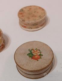 Tre scatoline di cartone utilizzati da antiche gioiellerie per anelli o ciondoli. Primo 900. Segni del tempo ma integre ed in buone condizioni.