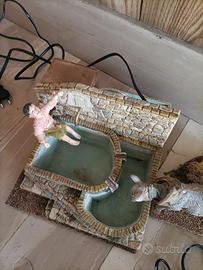 Scena di una fontana in resina (con pompa per l’acqua funzionante) dove il bimbo )testa pigini) muove i piedi creando onde sull'acqua e l’asino muove la testa dentro la fonte più bassa.