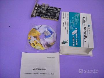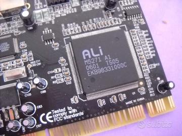 Scheda PCI 3 porte firewire + 7 porte USB 2.0, NUOVA mai usata, distribuite in : 2 porte firewire posteriori, 2 porte USB 2.0 posteriori, 1 porta firewire interna, 1 porta USB 2.0 interna, 2 connettori 10 pin per ulteriori 4 porte USB 2.0 interne, chipset Ali M5271, Firewire 480 - completa di imballo e istruzioni integerrimi - [qw 6901] -