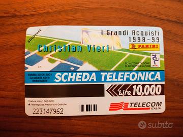 Vendo scheda telefonica Telecom Italia da 10.000 lire, edizione speciale “Colleziona Emozioni Panini” dedicata a Christian Vieri (stagione 1998-99, maglia Lazio). La scheda è nuova, mai usata, con sigillo originale integro.
