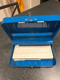Schedario in metallo Resisto misura h27 cm, larghezza 18,5 cm e spessore 5,3cm, ancora con schedario intonso, usati solo pochi fogli… perfetto e vintage