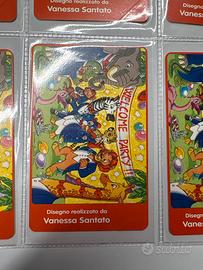 Schede “Kinder Pinguí” disegno realizzato da Vanessa Santoro. Valore L5000 €2,58. Tiratura 420000pz.