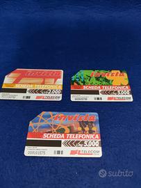Tre schede telefoniche Telecom Italia con grafiche diverse.