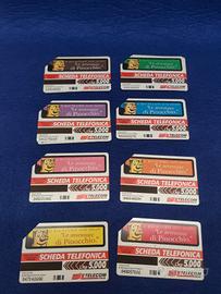 Set di 8 schede telefoniche a tiratura limitata con illustrazioni ispirate a Pinocchio.