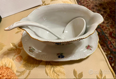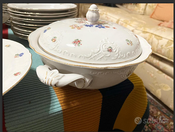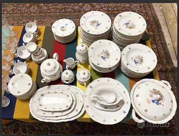 PREZIOSO e RARO set/servizio completo da tavola nr 108pz realizzato in pregiata porcellana bianca con motivi floreali e bordo in oro ondulato. Articoli originali Collezione SCHERZER BAVARIA.