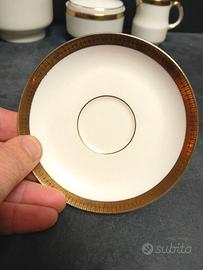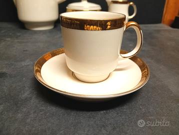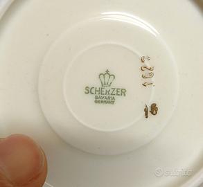 Bellissimo servizio da caffè, SCHERZER Bavaria porcellana fondo bianco con elementi a greca in finitura oro.