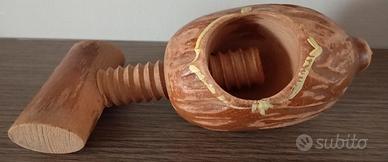 Schiaccianoci in legno vintage, realizzato e dipinto a mano, perfetto per collezionisti o come idea regalo.