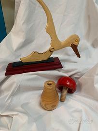 Vendo Schiaccianoci o mandorle vintage 1950/60 Provenienza centro/ nord Europa - Papera in ghisa su base in legno Cm 19x 6 e h cm 16 - peso circa 1,5 kg 25 € - fungo artigianale interamente in legno dipinto composto da 2 pezzi H cm 11 e L cm 8 - diametro base cm 4 a 15 € Spedizione a carico acquirente, consegna a mano Padova, concordando data anche Milano, Roma, Trieste.