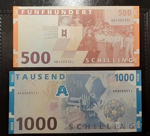 Due banconote austriache, una da 500 scellini e una da 1000 scellini.