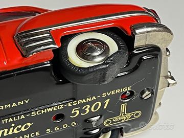 Raro automodello da collezione, telecomandato a filo. Il telecomando permette di sterzare d/s e di cambiare marcia avanti/indietro. Meccanismo a molla con chiave. Completo di confezione originale in ottime condizioni.
