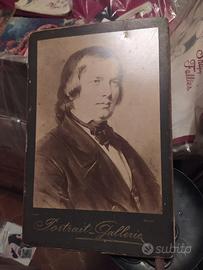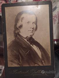 Schumann incisione di Carl jager autografata 1871 della serie portraits gallery originale galleria bruckmann germany pezzo di assoluta rarità e valore normalmente in quanto jager incisore celebre 800 e Schumann musicista di fama secolare , in questo caso la firma autografata nel margine bianco in basso a destra sotto ritratto ne moltiplica il valore, firma di jeger,in ogni caso pezzo introvabile o quasi in questa misura large cabinet 35x24cm su carta (cartonato) pesante e molto spessa dell' epoca in ottime condizioni con tutte le firme e diciture del caso che ne autenticano originalità non riproduzione quindi 800 pieno,per collezione di alto livello anzi museale infatti possibile trovarla nel museo di Dresda da non confondere con le proposte web già costose ma o digitalizzate oppure incisioni non su cartonato spesso pieno 800 (caratteristica fondamentale per originale epoca ed estetica del pezzo),inoltre di 15 cm immagine e no 35 cm come questo formato originale infine price di firma retro e davanti bruckmann gallery e soprattutto di firma autografa matita di Karl jager nel margine bianco