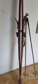 Sci d'epoca in legno con bacchette del 900,