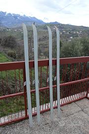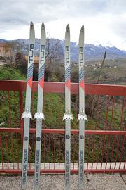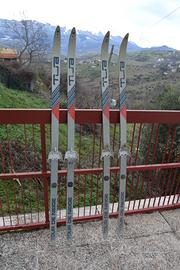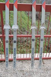 Vendo 2 paia di sci da fondo vintage marca TUA, modello Tour de Neige, completi di attacchi originali in metallo tipo 3-pin. Grafica classica in grigio/argento con dettagli blu e rosso. Sci in condizioni coerenti con l’età, senza rotture strutturali. Ideali per chi pratica sci nordico con attrezzatura tradizionale, per uso amatoriale, o come elemento decorativo in ambiente montano/rustico. Si vendono come mostrato in foto. Ritiro in zona preferibile, possibile spedizione a carico dell’acquirente.