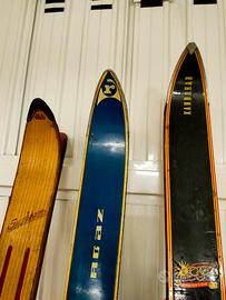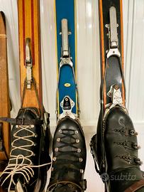 ..... buone condizioni x queste 3 paia di sci d'epoca , da collezione /museo/ esposizione ,eventuale consegna a mano : a partire in foto da sx....sci in legno da ragazzo anni 50 alti cm 147 + racchette e scarponcini euro 170 - sci in legno "K2/ SUNBEAM " cm 195 da adulto anni 50 + scarponi euro 250 - sci adulto anni 60 , cm.200 misto legno/laminato " ROAZ /VANGUARD " ( poi diventati royski / rovereto ) + scarponi euro 300 - sci PERSENICO ( neri) ( kandhar) VENDUTI.