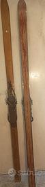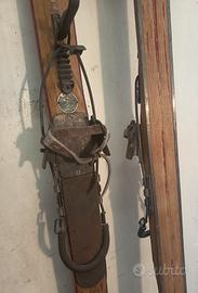 sci vintage 1949 alti 2 metri con racchette in bambù e attacchi funzionanti