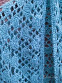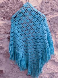Scialle lana vintage fatto a mano cm 160x115 in un bellissimo colore turchese senza mai essere usato