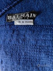 Bellissima scialle mantella pregiato marchio Balmain, Boutique Paris, colore blu, in lana,con frangia, modello vintage,misure: lunga cm.200, alta cm.70, frangia cm.10, prezzo affare 35 euro.