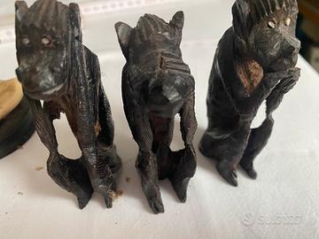 Statuine allegoriche in legno . Non vedo,non sento,non parlo. Altezza come da foto. Consegna a mano a Como. Spedizione tramite Subito.