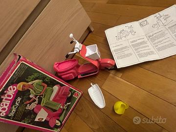 Scooter Starcycle di Barbie Mattel , anni 70. Completo di scatola e istruzioni. Con casco giallo, specchietto, sella apribile.