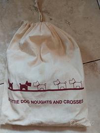 Gioco da tavolo " tris" senza regole, con pezzi in legno che raffigurano dei cani. Pezzi ottimi, il sacchetto ha una macchia visibile in foto.