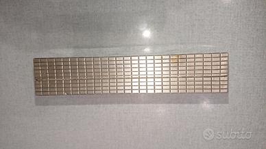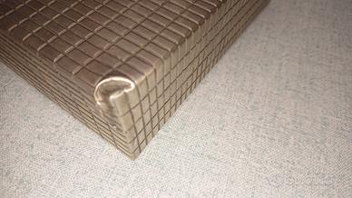 Portagioie modernista realizzato da Luigi Scremin intorno agli anni 50'/60'. Interno in legno rivestito con un motivo a tessere di mosaico in argento 800. Dim. 4x20x13 cm. Presenta un ammaccatura, come da foto allegata.
