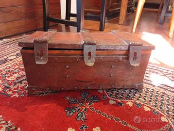 scrigno bauletto in metallo rivettato vintage. piccolo ma molto pesante. misure 41cmx21 altezza 20cm