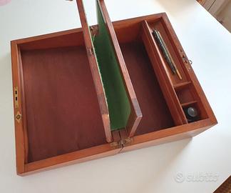 La scatola si apre e diventa un piccolo scrittoio con piano in feltro.