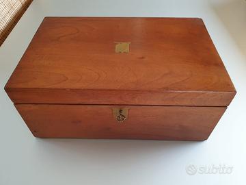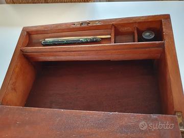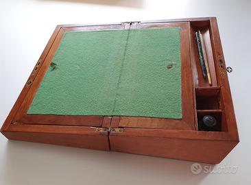 Scrittoio inglese vittoriano dell' 800 - da viaggio - legno (credo mogano) e inserti in ottone.