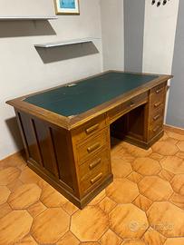 Struttura solida e capiente, dotata di numerosi cassetti laterali e ampio piano di lavoro. Stile classico, ideale per studio, ufficio o arredo vintage.