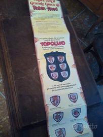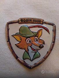 Sei scudetti in metallo, usciti in allegato ai sei numeri della rivista Topolino dal n° 1011 al n° 1016 nel 1975 in condizioni perfette come nella foto. Aggiungo il gioco da tavolo "Il Grande gioco di Robin Hood", allegato a Topolino n° 1009 che lanciava l'iniziativa in ottime condizioni.