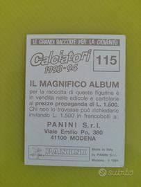 Scudetto Figurina 115 Juventus calciatori 1993 94