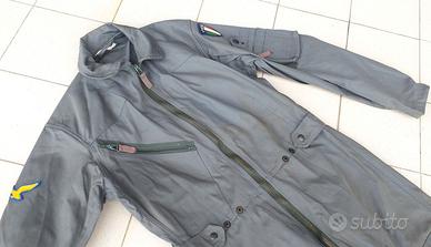 Bellissima tuta da volo Aeronautica Militare periodo anni '80, modello prodotto dalla famosa Ditta Giusti di Roma. Molto poco usata, condizioni molto buone. Classico colore vintage grigio, usato fino a qualche anno fa da piloti di F-104 - G91 - G222 ecc. Si nota qualche leggero alone sulla parte frontale, volendo credo facilmente lavabile e qualche segno dove era cucito il grado - nome o il patch del Gruppo di Volo. Presente anche una aquila azzurra cucita su un braccio. Tutti i bottoni e le zip perfettamente funzionanti. Etichetta della Giusti presente, la taglia militare A.M. riportata è PR (piccola-regolare, senza nessun impegno su taglie, vestibilità ecc. la cedo esclusivamente come oggetto da collezione, grazie), l'etichetta interna con le specifiche è presente e leggibile. Veramente stupendo pezzo.