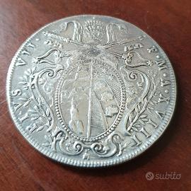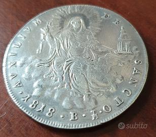 Cedo rara moneta, Scudo Romano, Stato Pontificio, Pio VII 1818, Bologna, Argento-Auxilium in perfette condizioni.