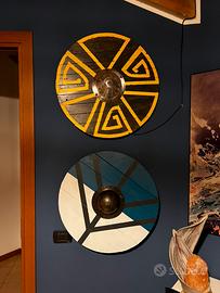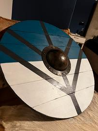 Vendo bellissimo scudo vichingo da esposizione realizzato a mano. Composto nel dettaglio con cura. Assemblato con legno di abete, unica parte in metallo l’umbone copri mano.