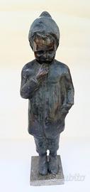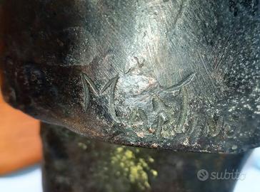 bellissime sculture in bronzo su base in marmo raffiguranti tipici " Scugnizzi e popolane " di giovanni de martino primi anni del 1900 .