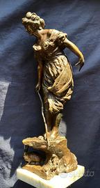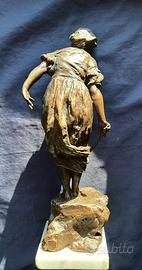Magnifica e Rara Scultura cm38 in Bronzo: "La Ragazza e il Coniglio"