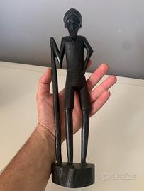Stupenda scultura africana in legno ebanizzato. Vintage anni’70. Completamente realizzata ed intagliata a mano. Misura altezza 34cm. Usata e vissuta ma in più che buone condizioni estetiche( da notare bastone incollato ma invisibile). Articolo decorativo splendido per appassionati del genere.