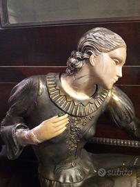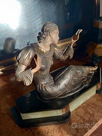 SCULTURA ART DECO' ( PRIMI 900) ,MENNEVILLE (pseudonimo dello scultore Ugo Cipriani).REALIZZATA IN METALLO POLICROMATO CON PATINA .MANI E VISO IN MATERIALE COLOR AVORIO ,BASE IN MARMO. MISURE: 52 LARGHEZZA X 20 PROFODITA’ X ALTEZZA 33cm mN