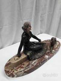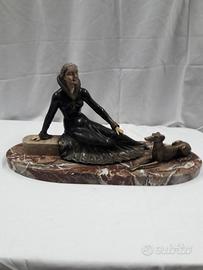 SCULTURA ART DECO' ( PRIMI 900) SALVATORE MELANI SCULTURA ART DECO' ( PRIMI 900) SU PIEDISTALLO IN MARMO RAFFIGURANTE UNA FIGURA FEMMINILE CON IL SUO LEVRIERO . FIRMATA (VEDI FOTO): SALVATORE MELANI(1902-1934). MISURE: 58 LARGHEZZA X 19 PROFODITA’ X ALTEZZA 30 cm ME