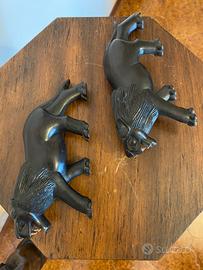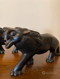 Scultura Antiquariato in legno ebano, rappresentante un Leone. Denti tipo avorio, condizioni ottime. Venduti a coppia.