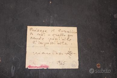 Quadro scultura astratta cm 28,5 x 29 del 1965 Moutier (protegge il lunatico per noi - quello che rende possibile l'impossibile)