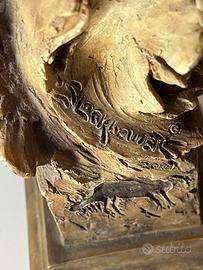 La firma conserva i segni originali della scultura, le condizioni della scultura sono buone manca un pezzettino di corno lato destro ( facilmente da rimettere ) il difetto comunque è riportato in foto