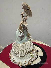 Scultura ceramica Capodimonte Dama con abito in pizzo stile 700 alcune mancanze al pizzo Solo ritiro a Torino