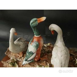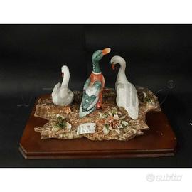 SCULTURA CON TRE PAPERE SARTORI MADE IN ITALY CAPODIMONTE MISURA PRODOTTO CM.46X26X26