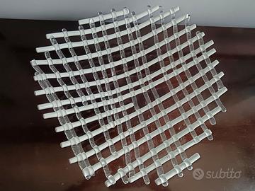 Una elegantissima scultura da centrotavola in vetro soffiato, realizzata a strisce, utilizzabile anche come coppa per la frutta, del maestro vetraio Massimo Lunardon, interprete per il vetro dei principali artisti internazionali. Produzione dei primi anni 2000.